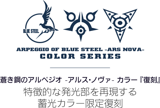 「アルペジオ」カラーシリーズは艦艇の特徴的な発光表現を蓄光顔料と蛍光染料により再現いたしました。