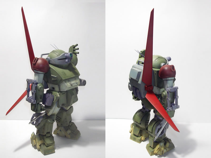 通常のボトムズカラーと比べてみると大分明るい赤ですが、まあエフェクトを前提とした色なので当然といえば当然です。
