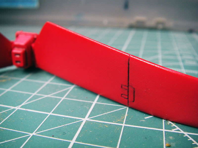 さて、できた! と思ったら忘れているところがありました。忘れていたのはカメラレンズの赤い部分。この状態ではキット付属のジェルシールを受かっていますが、劇中ではここも赤く光ってましたよね。
