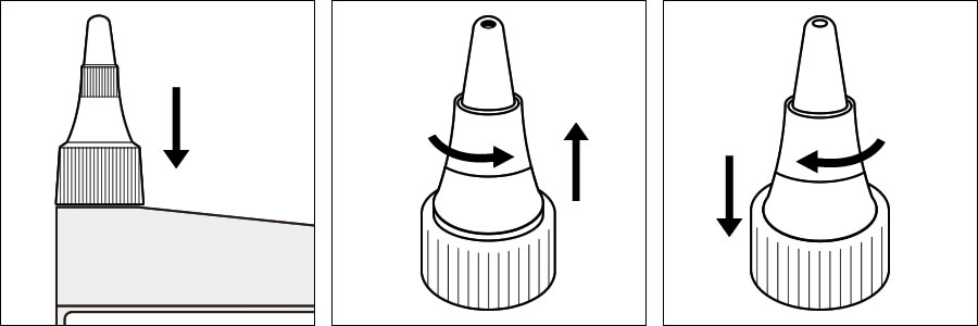 ニードルキャップデルタはガイアノーツの各種溶剤(250、500、1000mlサイズ)に使用できる付け替えキャップで溶剤を注ぎやすくするアイテムです。密閉性、耐久性が高く、壊れにくいアイテムです。キャップ本体の先端部を回すことで口が開閉します。短期の保管の場合はそのままでも構いませんが、長期間使用しない場合は通常キャップに付け替えて保管してください。
